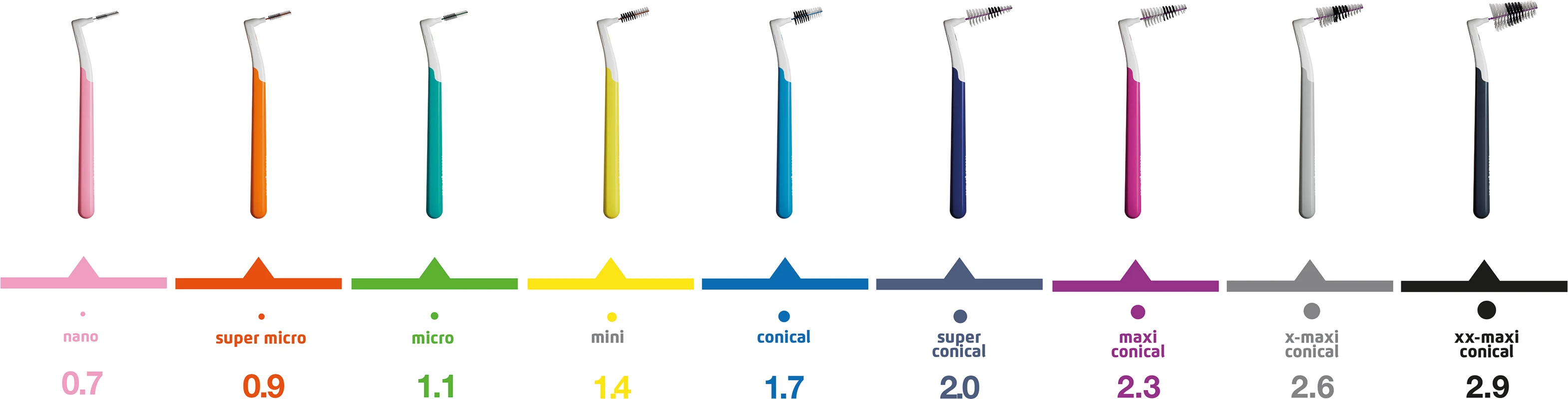 Das Sortiment lässt sich je nach Form des Bürstenkopfes und anderer technischer Merkmale in zwei Bürstentypen unterteilen: Interprox® und Interprox® plus. Beide können für die Reinigung der Zahnzwischenräume in jedem beliebigen Bereich der Mundhöhle verwendet werden. Für eine komfortablere Anwendung empfiehlt sich jedoch die folgende Verwendung: Interprox® plus für die hintere Mundhöhle (der abgewinkelte Kopf erleichtert den Zugang), Interprox® für die vorderen Zahnzwischenräume (die Schutzkappe kann auf den flexiblen Griff aufgesteckt werden, wodurch der Zugang zu den hinteren Bereichen erleichtert wird).