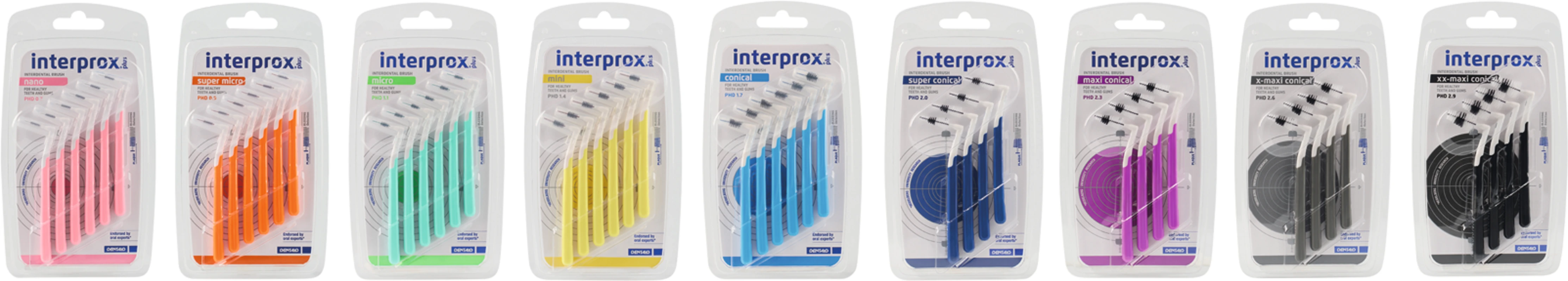 Die Interprox® - Produktpalette bietet das umfassendste Angebot an Interdentalbürsten, das von Experten für Mundgesundheit entwickelt wurde, um den oralen Biofilm restlos aus den Zahnzwischenräumen zu entfernen.