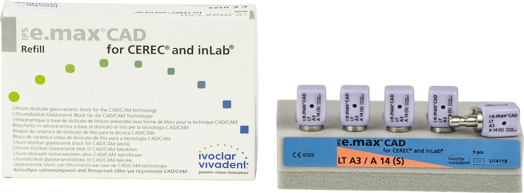 Die IPS e.max CAD for CEREC/inLab ist eine hochfeste Lithiumdisilikat-Vollkeramik, mit idealen ästhetischen Eigenschaften. Die Keramikblocks sind optimal für die Herstellung von vollanatomischen Kronen, Inlays und Veneers geeignet und werden im inLab-System oder CEREC-System (Sirona) verarbeitet. Die Blocks sind in unkristallisiertem Zustand bläulich und leicht bearbeitbar. Nach dem Kristallisationsbrand ist die Keramik zahnfarben und hochfest. IPS e.max Kronen aus CAD LT können selbstadhäsiv oder konventionell befestigt werden.