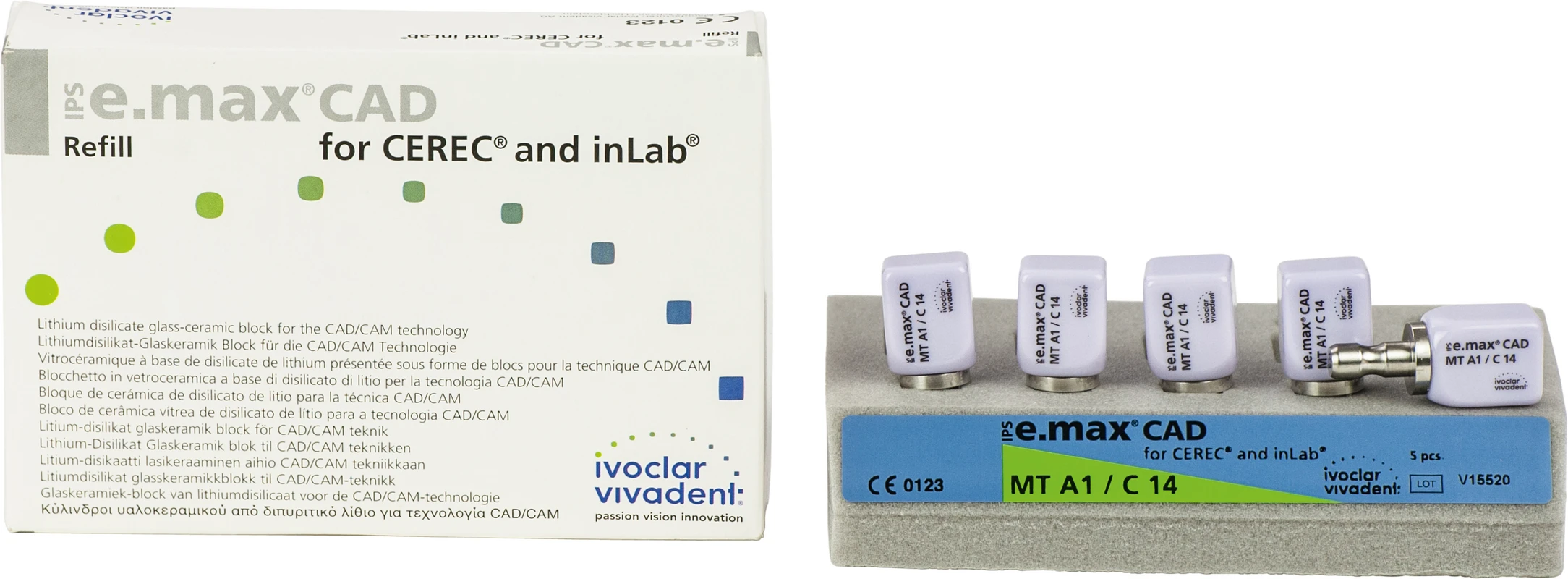 Die IPS e.max CAD for CEREC/inLab ist eine hochfeste Lithiumdisilikat-Vollkeramik, mit idealen ästhetischen Eigenschaften. Die Keramikblocks sind optimal für die Herstellung von vollanatomischen Kronen, Inlays und Veneers geeignet und werden im inLab-System oder CEREC-System (Sirona) verarbeitet. Die Blocks sind in unkristallisiertem Zustand bläulich und leicht bearbeitbar. Nach dem Kristallisationsbrand ist die Keramik zahnfarben und hochfest. IPS e.max Kronen aus CAD LT können selbstadhäsiv oder konventionell befestigt werden.