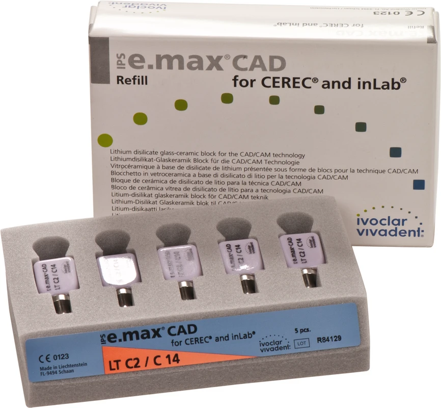 Die IPS e.max CAD for CEREC/inLab ist eine hochfeste Lithiumdisilikat-Vollkeramik, mit idealen ästhetischen Eigenschaften. Die Keramikblocks sind optimal für die Herstellung von vollanatomischen Kronen, Inlays und Veneers geeignet und werden im inLab-System oder CEREC-System (Sirona) verarbeitet. Die Blocks sind in unkristallisiertem Zustand bläulich und leicht bearbeitbar. Nach dem Kristallisationsbrand ist die Keramik zahnfarben und hochfest. IPS e.max Kronen aus CAD LT können selbstadhäsiv oder konventionell befestigt werden.