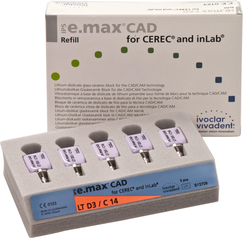 IPS e.max CAD Crystallization Spritze 1 g Crystallization Stains sunsetProduktinformationen "IPS e.max CAD for CEREC/inLab Packung 5 Stück Gr. C14, D3 LT"