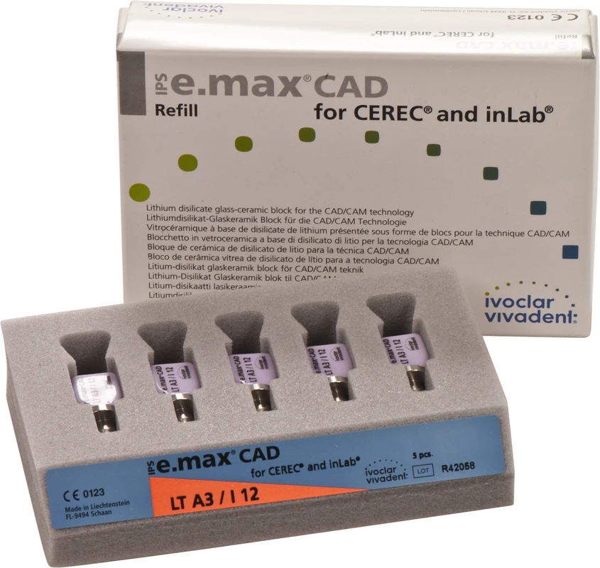 IPS e.max CAD Crystallization Spritze 3 g Crystallization Shade 4Produktinformationen "IPS e.max CAD for CEREC/inLab Packung 5 Stück Gr. I12, A3 LT"