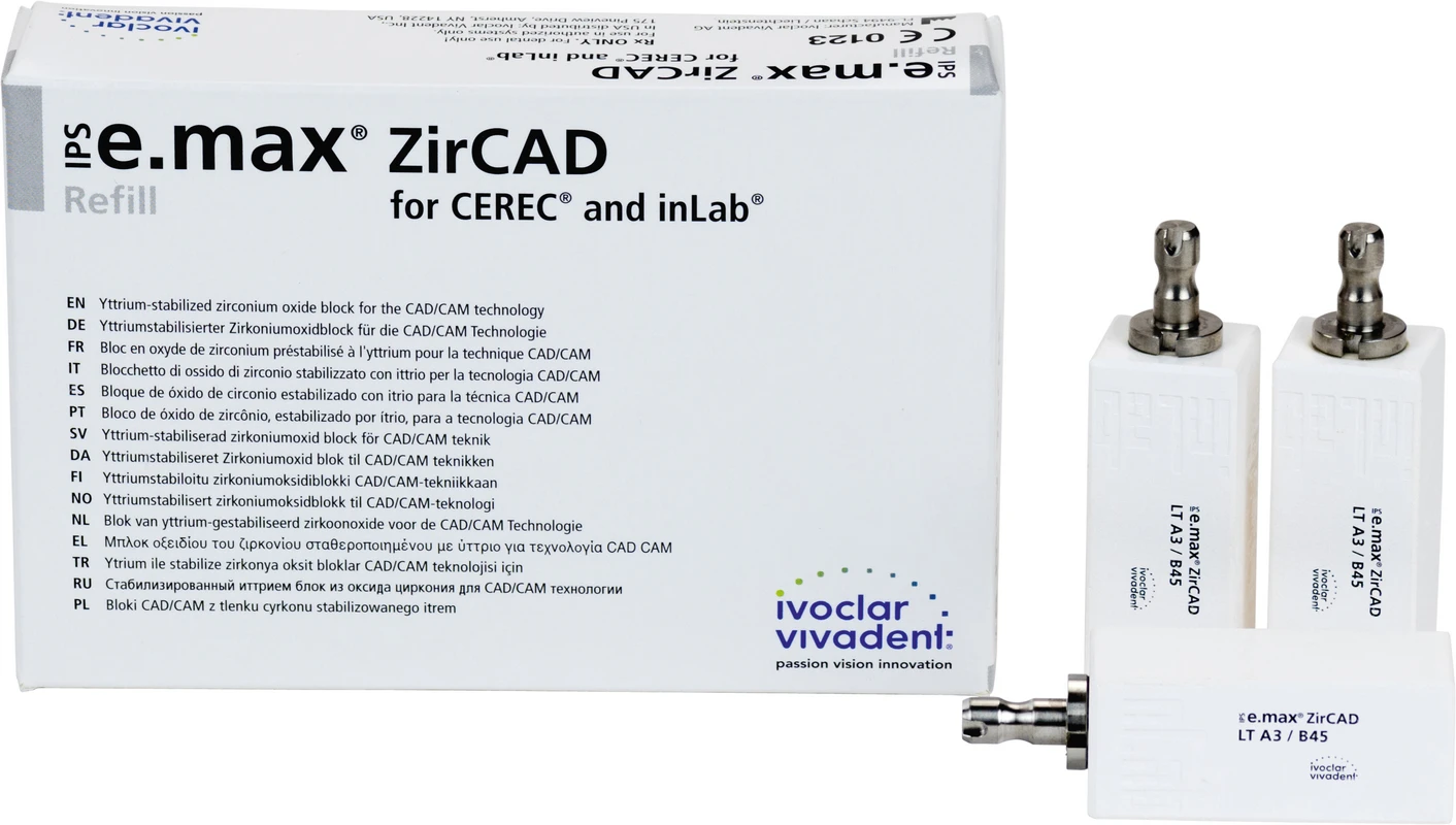 Produktinformationen "IPS e.max ZirCAD for CEREC/Inlab Packung 3 Stück LT A3 B45"