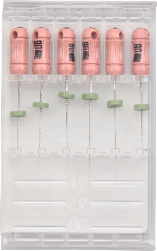 Die K-Feile ist die stärkste unter den Handfeilen mit geringem Bruchrisiko. Mit K-Feilen können Obliterationen wesentlich einfacher überwunden werden.Sie wurden mit dem Ziel entwickelt, während der Instrumentierung ein geschmeidiges, taktiles Gefühl zu erzeugen.