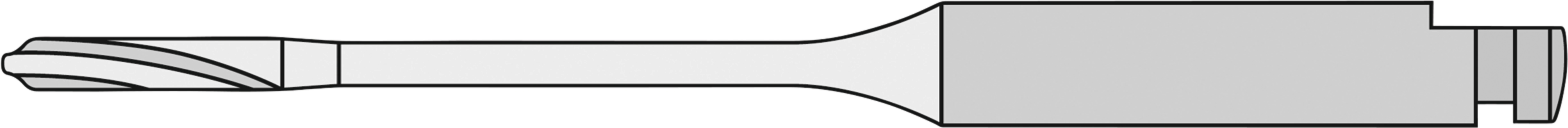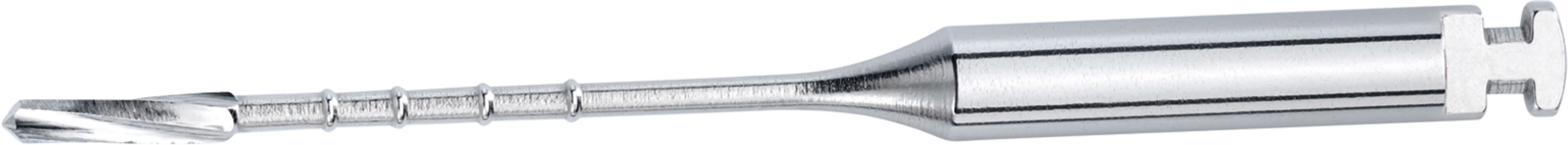 Exatec–S Wurzelstift mit selbstschneidenden Sägezähnen für Zähne mit starker Wurzel. 4 Abflußrillen Großer Stiftquerschnitt (> 3 mm²) und gerundeter Übergang für hohe Festigkeit Selbstschneidende Sägezähne Abgerundetes Stiftende Das Exatec-S Einsetz-Tool (29581) wird dazu verwendet, den Exatec-S Wurzelstift im Stiftkopf-Bereich zu halten und den Wurzelstift mit der Hand einschrauben zu können Inhalt: Wurzelstifte