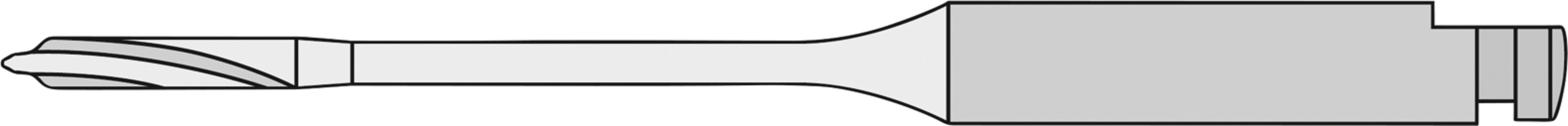 Exatec–S Wurzelstift mit selbstschneidenden Sägezähnen für Zähne mit starker Wurzel. 4 Abflußrillen Großer Stiftquerschnitt (> 3 mm²) und gerundeter Übergang für hohe Festigkeit Selbstschneidende Sägezähne Abgerundetes Stiftende Das Exatec-S Einsetz-Tool (29581) wird dazu verwendet, den Exatec-S Wurzelstift im Stiftkopf-Bereich zu halten und den Wurzelstift mit der Hand einschrauben zu können Inhalt Wurzelstifte