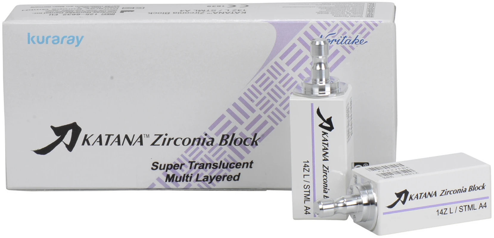 Der monolithische KATANA™ Zirconia Block ist der innovative mehrschichtige Zirkon-Block, der Zirkon-Restaurationen mit einem Fräs- und Sinterprozess in nur 45 Minuten direkt am Behandlungsstuhl zulässt – das optimale Zusammenspiel innovativer Materialien und neuester Technologien. Der KATANA™ Zirconia Block vereint seine starken mechanischen Eigenschaften mit hoher natürlicher Ästhetik. Die hohe Transluzenz und hohe Biegefestigkeit führen zu besseren mechanischen Eigenschaften als Lithiumdisilikat-Glaskeramik und einer außergewöhnlichen Ästhetik.