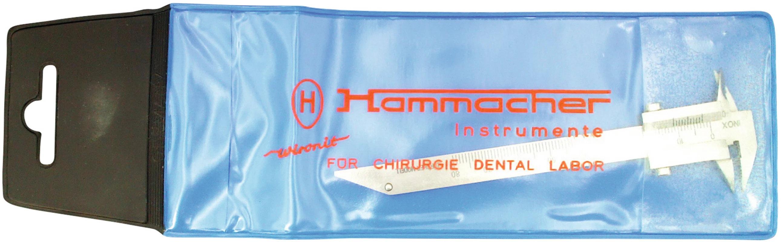 Feine, gebogene Spitzen für Außen- und Innenmessungen zur routinemäßigen und diagnostischen Arbeit direkt am Patienten und am Modell. Ideal für intraorale Messungen. Skala auf der Rückseite für Sagittalstufen- und Tiefenmessungen. Messbereich 0-80 mm (auf 0,1 mm genau). Sterilisierbar.