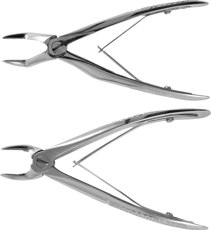 Robuste Zahnzangen mit präzise ausgearbeitetem Zangenmaul mit Haftprofil; Gelenk mit integrierter Teflonscheibe.