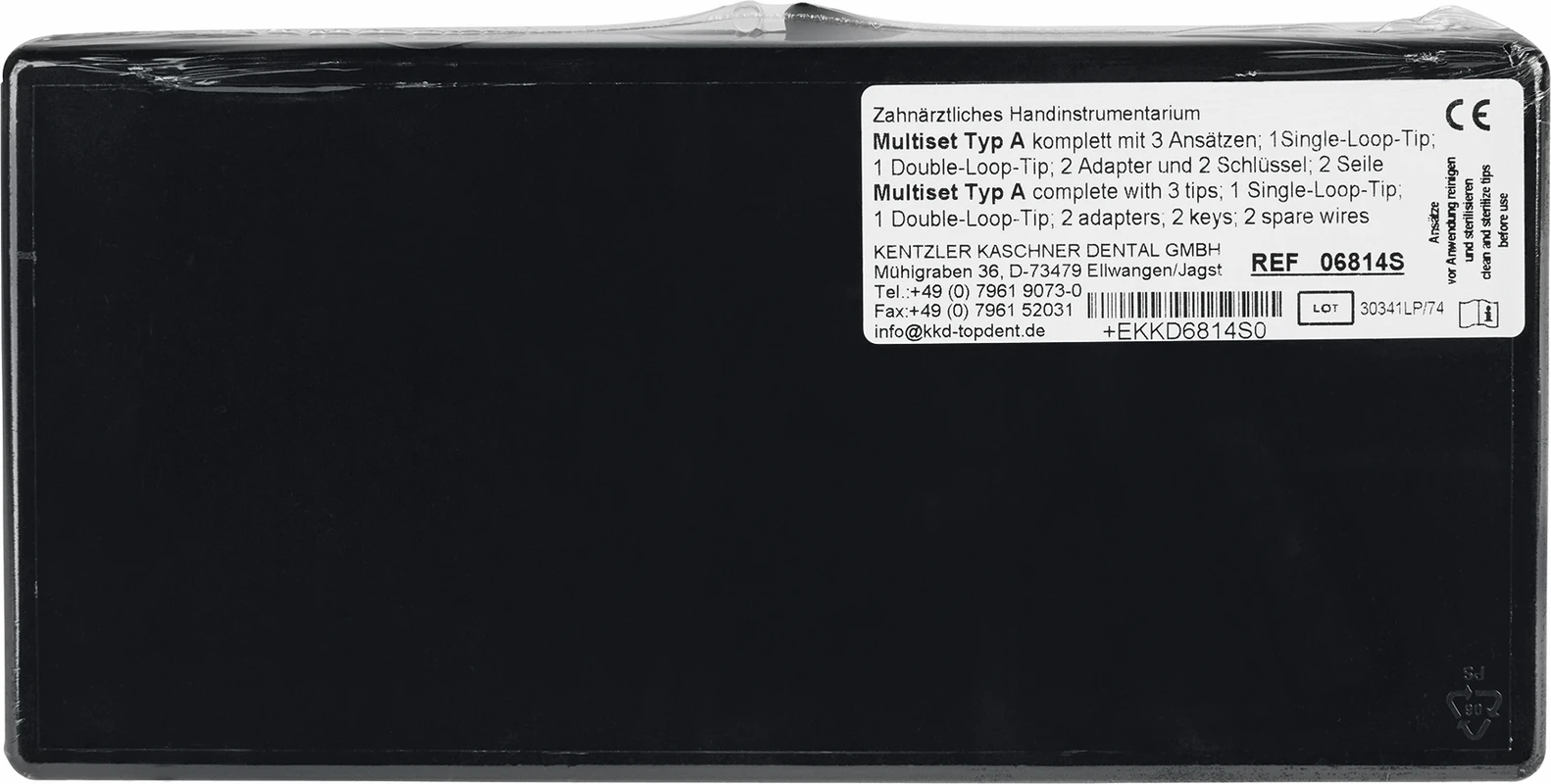 Durch das Zusammenschieben des Handgriffs können drei unterschiedliche Intensitäten des Schlagimpulses eingestellt und ausgelöst werden. Ansätze sterilisierbar.