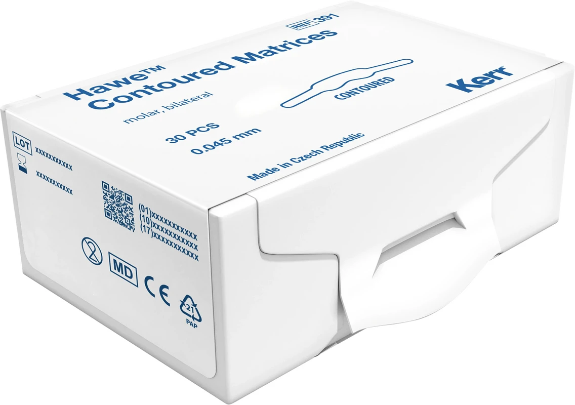 Hawe anatomisch vorgeformte konturierte Matrizen in Edelstahl.