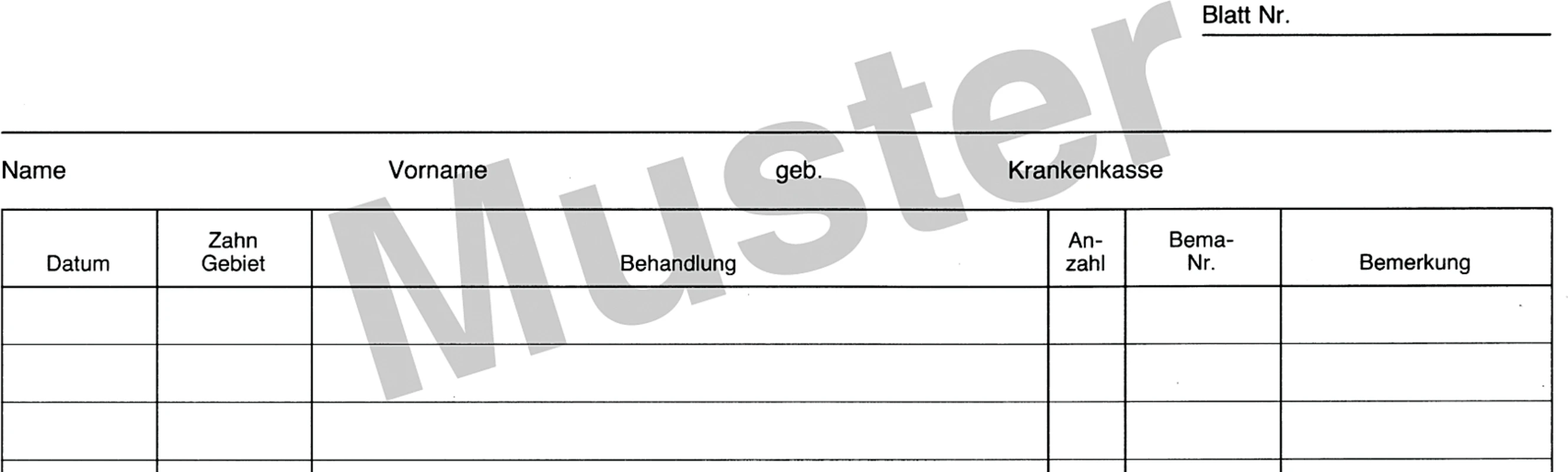 Es wird verwendet zur Behandlungsdokumentation bei Kassenpatienten; hinter der Behandlungsbeschreibung kann man gleich die entsprechende „BEMA-Nr.“ in der richtigen „Anzahl“ eintragen.