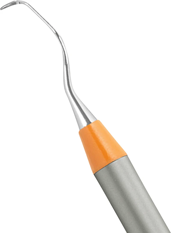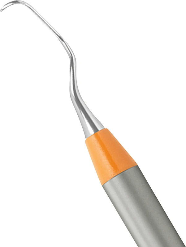 - 10% schmaleres Arbeitsende als Standard erleichtert das Einführen in die Zahnfleischtaschen, reduziert die Gewebeüberdehnung - folglich weniger Traumatisierung