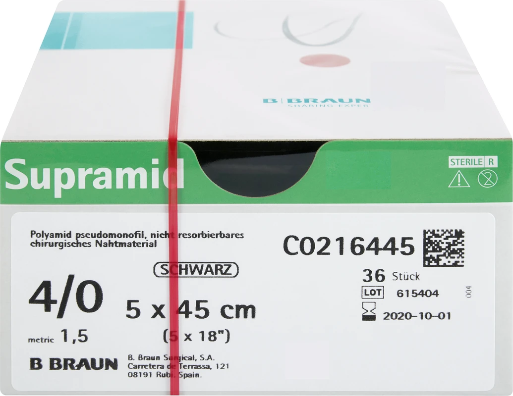 Produktinformationen "Kurzfäden Packung 36 Stück Supramid, 5 x 45 cm schwarz, USP 4/0"