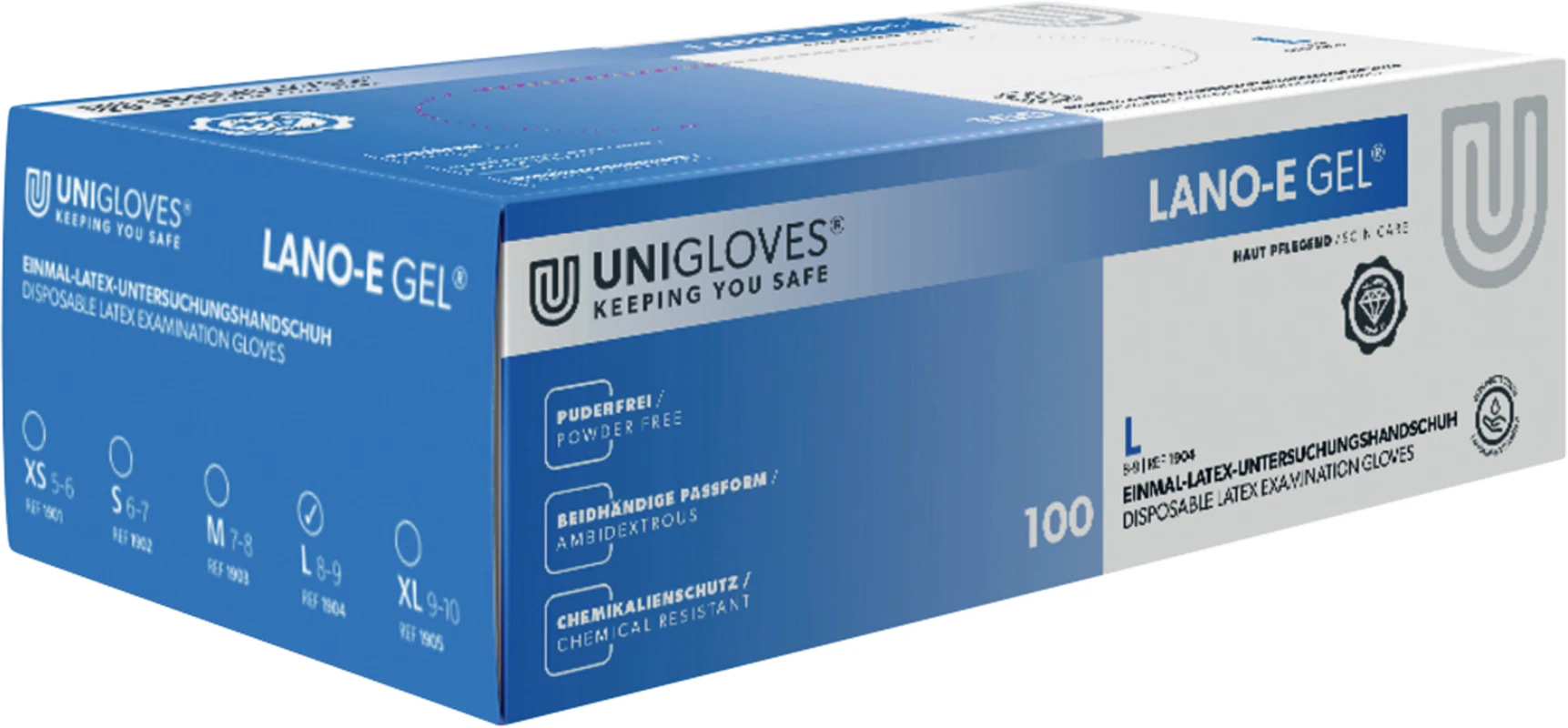 LANO-E GEL® Latexhandschuhe – puderfrei, L, 100 Stück