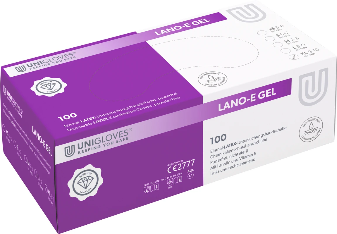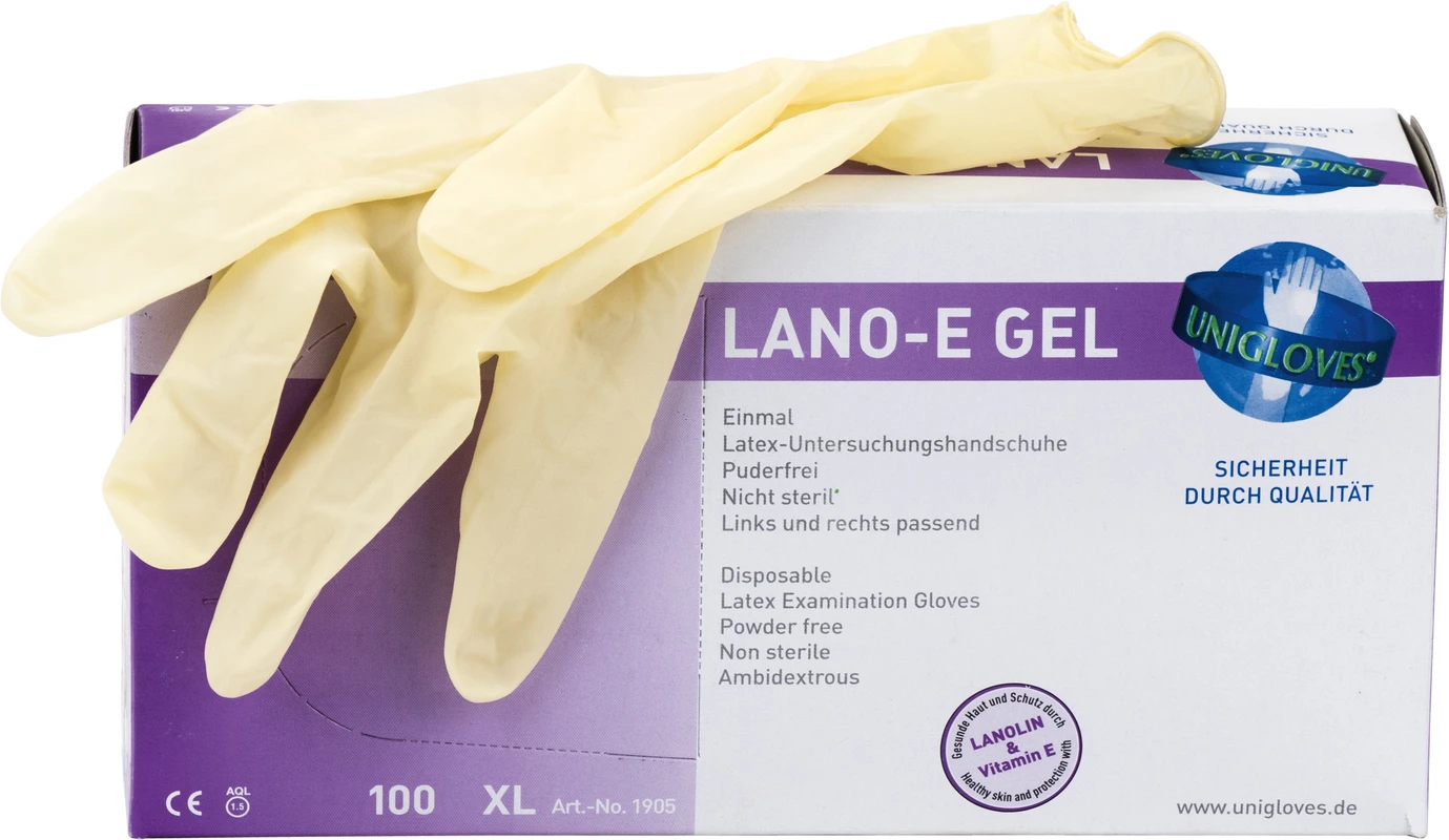 LANO-E GEL® Latexhandschuhe – puderfrei, XL, 100 Stück