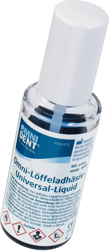 Das Adhäsiv wird gleichmäßig auf die gereinigte Innenseite des Abformlöffels aufgetragen und vor dem Einbringen des Abformmasse vollständig getrocknet. Die Haftschicht sichert die stabile Verbindung während der Abformung und trägt so zur Qualität des Abdrucks entscheidend bei.