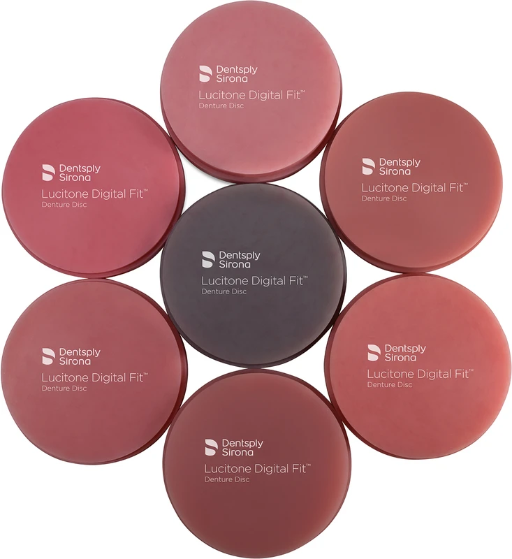 Lucitone Digital Fit™ Prothesenscheiben ermöglichen dem Dentallabor die Herstellung einer hochwertigen digitalen Prothesenbasis. Die Lucitone Digital Fit™ Ronden zeichnen sich durch eine hohe Bruchfestigkeit und einem geringen Monomer-Restgehalt aus. Durch die neu entwickelte Materialstruktur liegt die Einsatzdauer der Fräser bei bis zu 30 Stunden. Für die Erstellung von Ober- und Unterkiefer ist die Ronde in sieben Farben verfügbar.