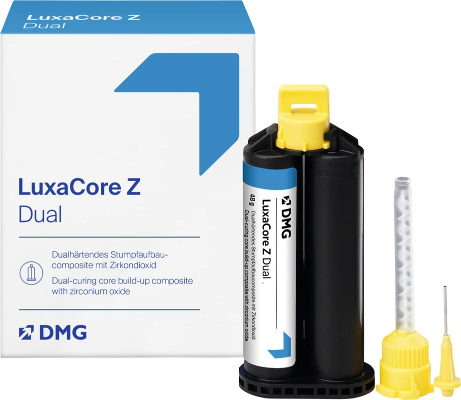 Premium-Composite speziell für Stumpfaufbauten sowie zur Befestigung von Wurzelstiften. Durch seine einzigartigen naturnahen Materialeigenschaften lässt sich LuxaCore Z beschleifen wie Dentin. Aufgrund des Zirkondioxid-Anteils sind die Werte für Druckfestigkeit und Beschleifbarkeit noch besser als beim vielfach ausgezeichneten LuxaCore. Vorteile Beschleifbar wie Dentin Optimierte, naturnahe Materialeigenschaften dank Zirkondioxid Besonders hohe Druckfestigkeit Füllen in einem Arbeitsgang, keine Schichttechnik nötig Automatische Anmischung und direkte Applikation Aushärtungszeitpunkt selbst bestimmbar Sofort hohe Endhärte Direkte Applikation mit den Intraoral-Tips Inhalt 48 g Doppelkartusche30 Automix-Tips20 Intraoral-Tips10 Endo-Tips Produktvideos: