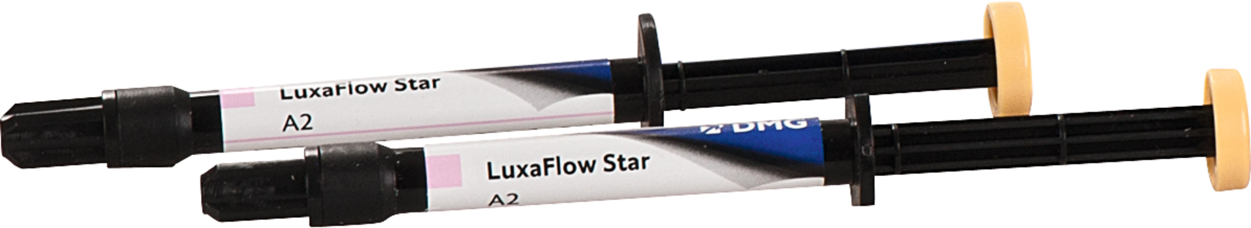 Luxatemp® Fluorescence Packung 15 g Spritze A2, 10 Smartmix TipsProduktinformationen "LuxaFlow Star Packung 2 x 1,5 g Spritze A2, 10 Luer-Lock Tips"