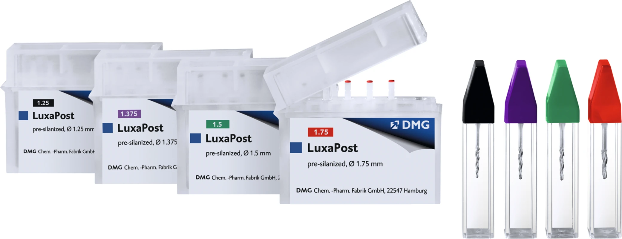 Glasfaserverstärkter, vorsilanisierter Composite-Wurzelstift mit dentinähnlichem Biegemodul; röntgenopak; substanzschonende konische Form; kein Vorbohren notwendig. Perfekt abgestimmt auf LuxaCore Z-Dual und LuxaBond-Total Etch.