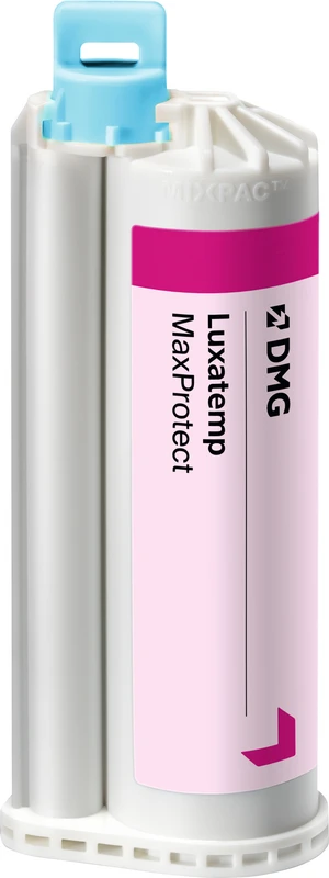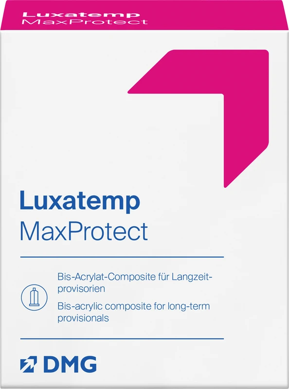 Luxatemp MaxProtect ist ein selbsthärtendes Composite, das in sechs ästhetischen Farben erhältlich ist. Aufgrund seiner Tragedauer von bis zu zwölf Monaten eignet es sich für die Herstellung von (langzeit) provisorischen Kronen, Brücken, Teilkronen, Veneers, Inlays und Onlays. Das Composite ist frei von Methyl-methacrylat. Dieses qualitativ hochwertige Material erfüllt mechanische Langzeitanforderungen und bietet eine garantierte Tragedauer von einem Jahr (klinisch nachgewiesen).