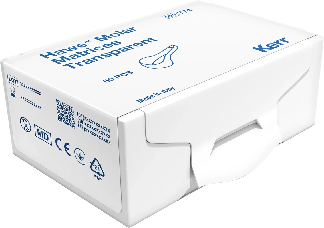 Besonders gut geeignet für lichthärtende Füllungen. Die anatomische Form der Matrizen verringert das Nachbearbeiten der Füllungen erheblich.
