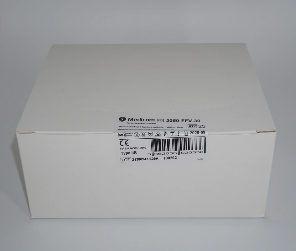 SafeMask® SofSkin® Varianten bieten unübertroffenen Komfort für Anwender* innen mit empfindlicher Haut. Sie sind latexfrei und haben ein besonderes sanftes, hautfreundliches Innenvlies. Speziell für Brillenträger: ein eingearbeiteter Fließstreifen verhindert zuverlässig das Beschlagen der Brille. Zusätzlicher Schutz vor Spritzern aufgrund der Typ IIR Klassifizierung. Medicom® SafeMask® SofSkin® fog-free medizinischer Mundschutz