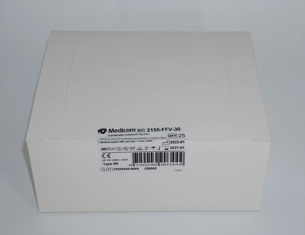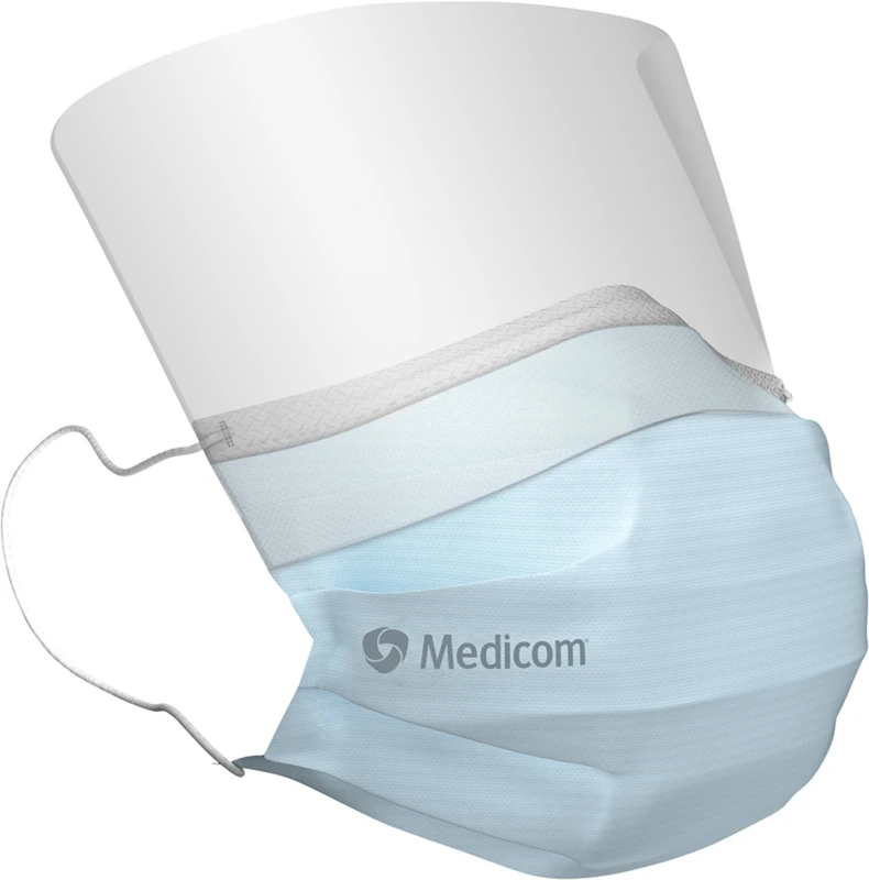 Produktinformationen "Medicom® SafeMask® SofSkin® fog-free medizinischer Mundschutz Packung 25 Stück blau, mit Visier, mit Ohrschlaufe"