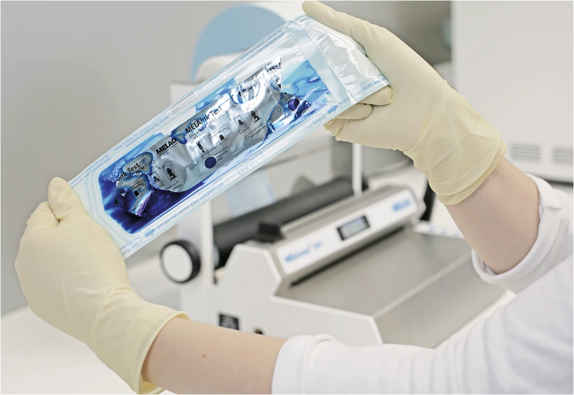 Mit MELAcontrol Seal Check erfolgt die geforderte Kontrolle von Siegelgeräten schnell und kostengünstig. Das Indikatorpapier weist präzise die Qualität und Reproduzierbarkeit der Siegelnähte nach. Mit dem korrekten Verschmelzen der inneren Folienschicht und dessen richtiger Andruck auf dem Papier wird eine vollflächige Siegelnaht erzeugt. Nicht ausreichende Siegeltemperaturen, verschlissene Schweißschienen oder mangelnder Anpressdruck werden so sichtbar. ISO 11607-2 konform(LxB) 18 cm x 7,5 cmVordruck für Angaben zur Praxis, zum Siegelgerät und zur Durchführung des Seal Checks Inhalt 100 Teststreifen Produktvideos: