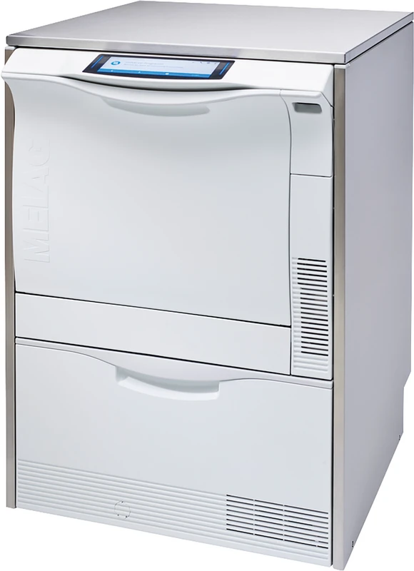 MELAG MELAtherm 10 (inkl. CF-Card und MEtherm Starter-Set) Leistungsfähiger Thermodesinfektor (RDG) mit aktiver Trocknung Das innovative Konzept des MELAtherm 10 bietet der Praxis alle Vorzüge für die schnelle, sichere und vor allem kostensparende Reinigung und Desinfektion der Instrumente. Der Thermodesinfektor kann platzsparend unter der Arbeitszeile platziert werden - denn alle prozessrelevanten Komponenten sind bereits im MELAtherm 10 integriert. Um mit der praxisoptimierten Aufbereitungskammer alle Anwendungswünsche erfüllen zu können, stehen über 80 verschiedene Körbe und Zubehörartikel zur Verfügung. Auch die validierbare Aufbereitung von Hohlkörperinstrumenten (z.B. Übertragungsinstrumenten und ZEG-Spitzen) ist im MELAtherm 10 problemlos möglich. Diese Vorteile ohne Aufpreis machen den MELAtherm 10 Thermodesinfektor so einzigartig: Aktive Trocknung: Die aktive Außen- und Innentrocknung schützt die Instrumente vor Rekontamination, Korrosion und Beschädigung Integrierte Prozessmedien und Dosiermodul: Die Integration der Prozessmedien und des Dosiermoduls schafft Platz, erleichtert die Arbeit und hilft, Fehler zu vermeiden. Integrierte Dokumentation: Mit integriertem CF-Card-Slot und zwei Netzwerk-Schnittstellen entstehen keine zusätzlichen Kosten für die Dokumentation. Praxisoptimierte Aufbereitungskammer: Das optimierte Raumkonzept in Verbindung mit einem vielseitigen Angebot an Einsatzkörben hilft Zeit und Kosten zu sparen Der MELAtherm 10 steht in zwei Ausführungen zur Verfügung: MELAtherm 10 DTA (400 V Drehstrom): Art.-Nr. 10020 MELAtherm 10 DTB (230 V Wechselstrom): Art.-Nr. 10021 Die optionale Wasseraufbereitungs-Anlage MELAdem 53 versorgt MELAtherm 10 in der Schlussspülung zum Schutz und zur Pflege der Instrumente mit demineralisiertem Wasser. Mit dem Einsatz des MELAstore-Systems wird der Aufbereitungsprozess optimiert: Die MELAstore - Trays sorgen für eine erhöhte Sicherheit und Zeitersparnis. Praxen, die den Workflow der Instrumentenaufbereitung nicht nur zeit- und kostensparend durchführen wollen, sondern zur eigenen Sicherheit auch dokumentieren und zurückverfolgen möchten, können die speziell für den MELAG Workflow entwickelte Software MELAtrace verwenden. Diese stellt eine optimale Integration aller im Aufbereitungsprozess eingesetzten MELAG-Geräte dar. Mit MEtherm bietet MELAG aufeinander abgestimmte Prozessmedien an, die beste Reinigungsergebnisse in Verbindung mit minimalem Verbrauch im MELAtherm 10 sichern. MELAtherm 10 wird mit einem kostenlosen Starter-Set MEtherm ausgeliefert. Inhalt Thermodesinfektor Produktvideos: