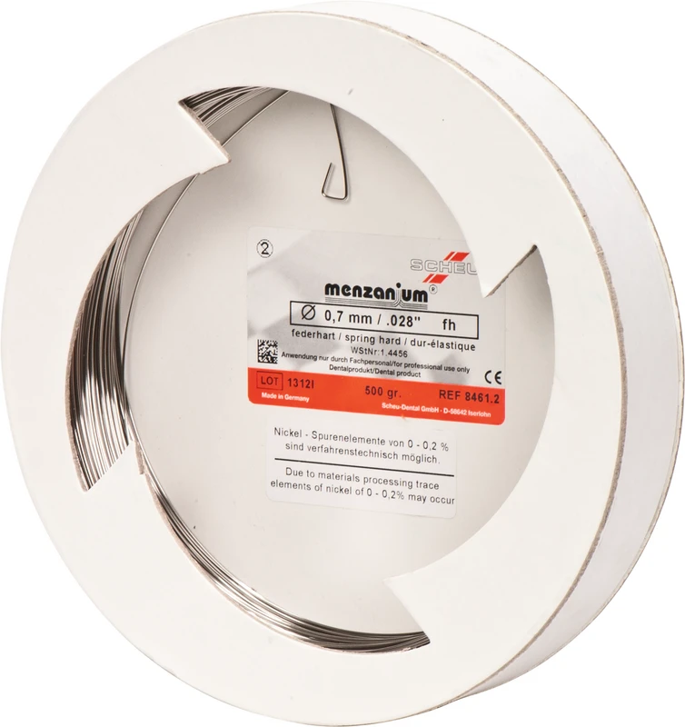 MENZANIUM® ist eine nickelfreie* Edelstahllegierung, bei der in einem patentierten Hochdruck-Schmelzverfahren Mangan und Stickstoff die allergenen Nickelanteile ersetzen. Gleichzeitig erhöht sich die Korrosionsbeständigkeit und Bruchfestigkeit im Vergleich zu herkömmlichen Edelstahldrähten. Unsere Spulendrähte aus MENZANIUM® sind diamantgezogen und hellglänzend. Die Verarbeitung ist durch Fügetechniken wie Lasern und Schweißen möglich.
