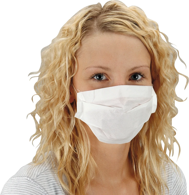 Einwegmaske aus sehr leichtem Vliesmaterial.