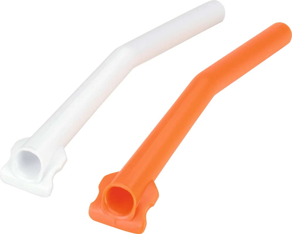 Längere Einmal-Kunststoffabsaugkanüle mit eckiger Pelotte, ø 11 mm, Länge 14 cm.