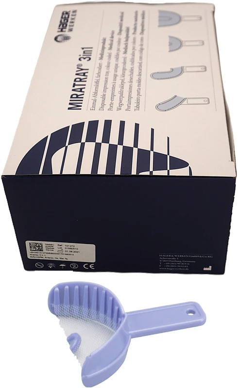 Partielle Einmal-Abformlöffel. 3 Arbeitsschritte in einem: Abdruck, Gegenabdruck und Bissregulierung.
