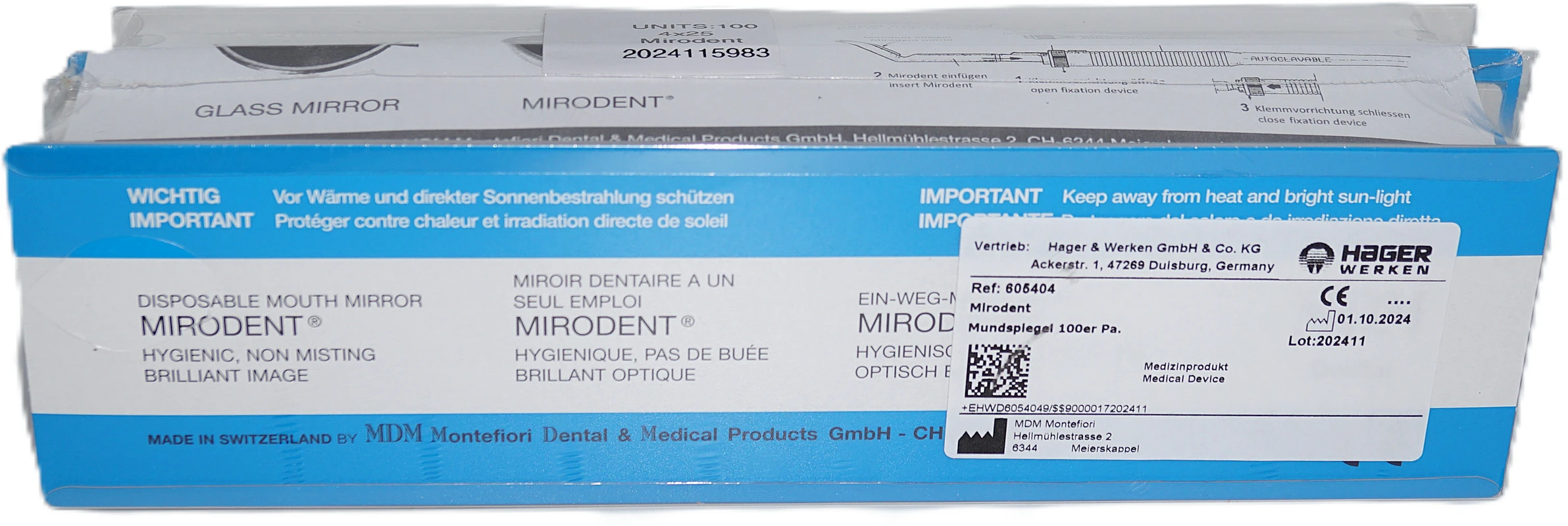 Produktinformationen "Mirodent Packung 100 Spiegel, 4 Griffe"