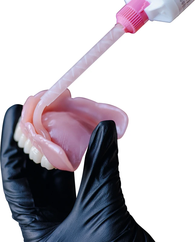 Permanente Prothesenunterfütterung auf A-Silikonbasis, chairside, dauerhaft weichbleibend, kalthärtend. Sichere Haftung am Prothesenacrylat. Zum manuellen Anmischen, Dosierung 1:1. Auch geeignet für Immediatprothesen. Biokompatibel, geruchs- und geschmacksneutral. Kann auch im indirekten Verfahren verarbeitet werden. Farbe gingiva.mollosil® Remover Tropfflasche - zum schnellen und sicheren Lösen der Verbindung zwischen elastischen Unterfütterungssilikonen und Prothesenacrylat. Einfache Anwendung, zeitaufwändiges Entfernen durch Fräsen entfällt. Keine Rückstände und Wechselwirkung bei wiederholter Unterfütterung. Inhalt: 10 ml Remover