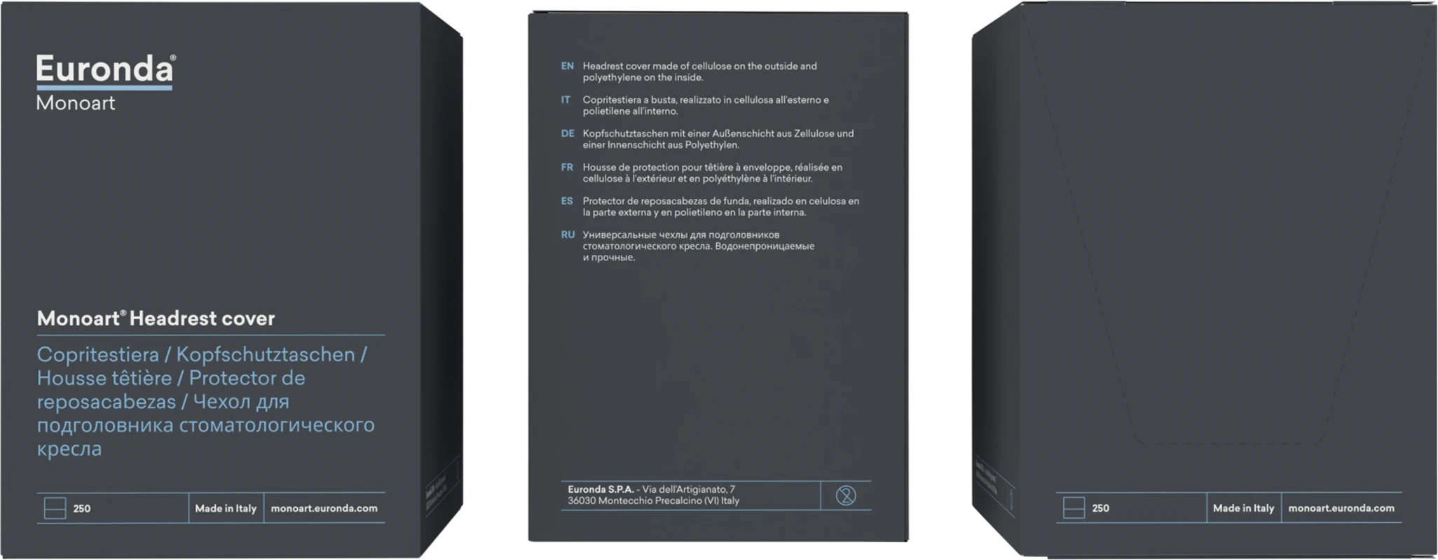 Monoart® Kopfschutztaschen schützen die Kopfstütze Ihres Behandlungsstuhls vor Verunreinigungen. Zum Beispiel durch Haarspray, Haarfärbemittel oder Schweiß. Die Hüllen werden einfach über die Kopfstütze der Behandlungseinheit gezogen und können mit einem Handgriff gewechselt werden. Hygieniescher Schutz für Patientenstühle beim Zahnarzt, in Arztpraxen und Studios.