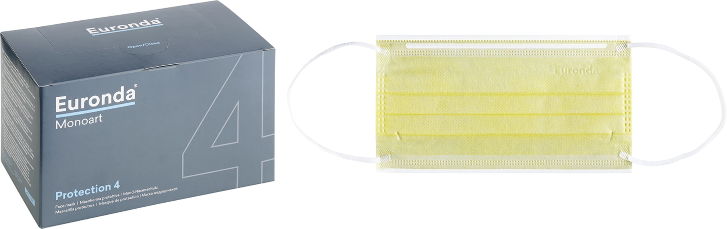 Produktinformationen "Monoart® Mundschutz Pro 4 Perfect Fit Box 50 Stück mit Gummizug, gelb"