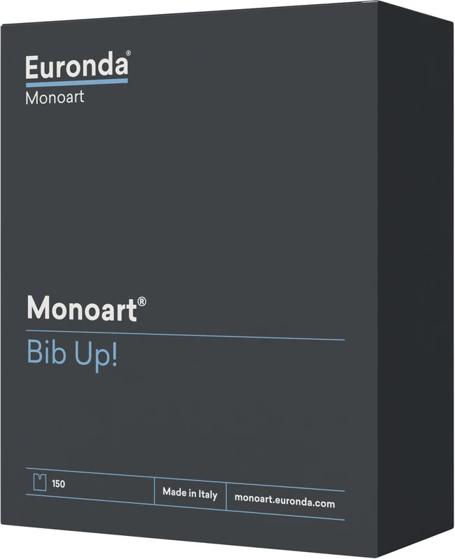 Bib Up! Patientenumhänge gibt es in XX klassischen Monoart-Farben. Sie bestehen aus einer Lage besonders saugfähiger Zellulose, die Spritzer und Feuchtigkeit aufnimmt. Die zweite Lage, eine darunter liegende Folie, verhindert ein Durchnässen. So bleibt Patientenkleidung sauber und trocken. Die Umhangform eignet sich besonders für die Prophylaxe oder bei medizinisch-kosmetischen Anwendungen. Die Touch-On-Befestigung der Monoart Bib Up! kann besonders bei ängstlichen Patient:innen eine gute Alternative sein. Der leichte Schulterdruck beim Anbringen wirkt wie eine sanfte Berührung. Der Verzicht auf halsumschließende Befestigung verhindert ein Enge-Gefühl. Ein Spender-Karton Monoart Bib Up! enthält 150 einzeln entnehmbare Umhänge. Er passt in handelsübliche Schubladen von medizinischen Möbelzeilen und erlaubt so eine hygienische Lagerung und bequeme Entnahme.