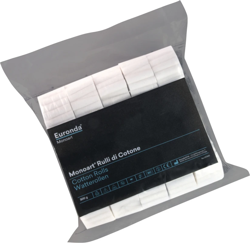 Monoart Watterollen bestehen aus reiner, natürlicher Baumwolle. Wir verwenden extra lange Fasern. Das hält die Watterollen bei der Benutzung in Form und verhindert ein Ausfasern. Sie besitzen ein hohes Absorptionsvermögen. Im Einsatz als Dental-Watterollen saugen sie viel Speichel und Flüssigkeiten während der Zahnbehandlung auf. Durch das Einlegen zwischen Kiefer und Wange unterstützen sie außerdem das Abhalten und damit eine gute Sicht auf den Eingriffsbereich. In der richtigen Größe helfen sie Beim Einzementieren von Kronen und Brücken durch Druckfixierung.