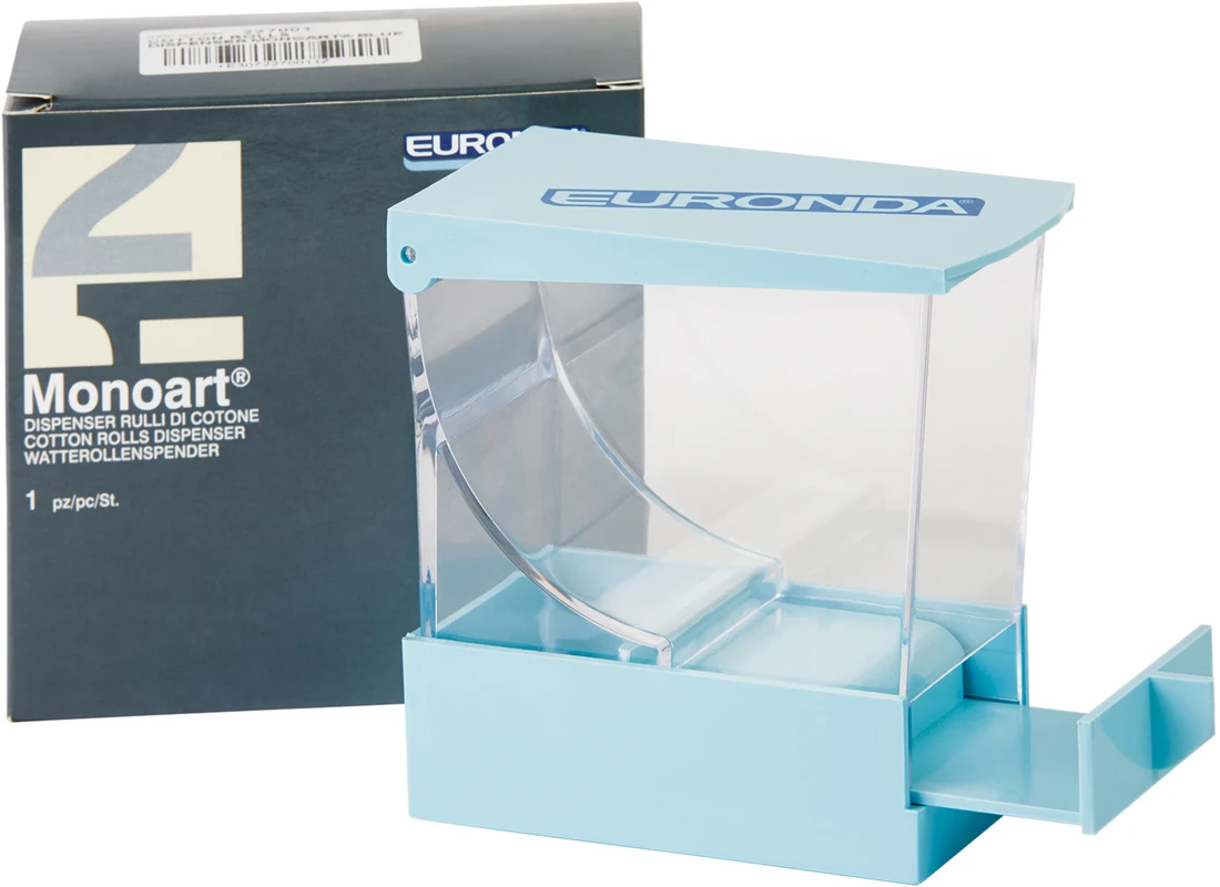 Watterollenspender zur hygienischen Lagerung und Entnahme von Watterollen. Ausreichend für ca. 40 Watterollen. Das unempfindliche Kunststoffgehäuse ist in den Farben blau oder weiß lieferbar.