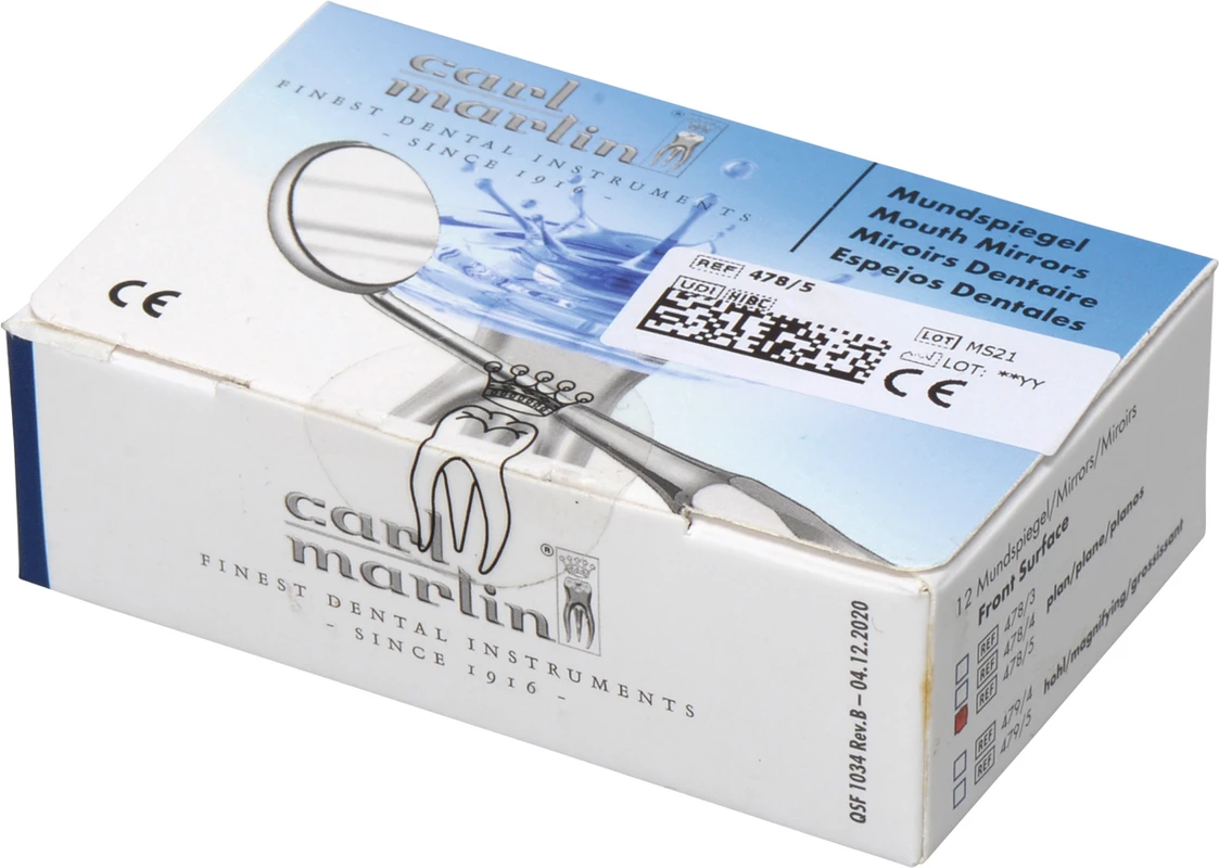 Produktinformationen "Mundspiegel Packung 12 Stück Ø 24 mm, plan, Rhodium-Effekt"