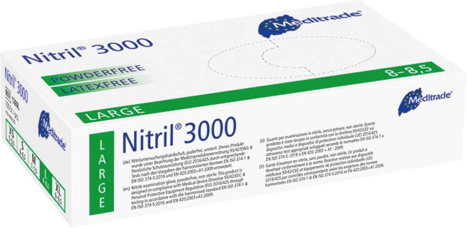 Produktinformationen "Nitril® 3000 Packung 100 Stück puderfrei, weiß, L"