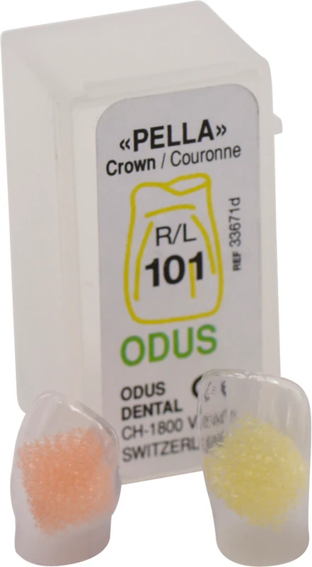 ODUS Pella Kronen sind transparente Streifenkronen, die für die Konturierung von restaurativem Material und die Anpassung des natürlichen Gebisses mittels "Peel-Off" -Technik entwickelt wurden.Die große Auswahl an verfügbaren Formen und Größen ermöglicht es, das natürliche Gebiss auf einfache und schnelle Weise mit minimaler Nachbearbeitung anzupassen. Die Kronenformen bieten eine überlegene Ästhetik als andere Konturierungstechniken, da sie das restaurative Material automatisch an das natürliche Gebiss anpassen. Die Produkttransparenz ermöglicht den Einsatz von lichthärtenden Verbundwerkstoffen als restaurative Materialien. Darüber hinaus hinterlässt die einfache Abisolierung der Kronenform nach dem Harzhärten (Peel Off Technik) eine glatte Oberfläche, die nur eine minimale Nachbearbeitung erfordert, während die dünnen interproximalen Wände enge Kontakte zwischen den Zähnen ermöglichen.Das Produkt ist in 39 verschiedenen Formen/Größen erhältlich, sowohl für die Kinder- als auch für die Erwachsenenzahnheilkunde. Die Kronenformen sind nach einer bestimmten Tabelle nummeriert, um jede verfügbare Form/Größe genau zu identifizieren. Sie sind in verschiedenen Schalen verpackt und präsentieren 39 Einzelpaare (rechts und links), 18 Einzelpaare (rechts und links) oder in Nachfüllungen von 6er-Einzelpaaren (rechts und links).Zusätzlich zu den transparenten Kronenformen von Pella bietet PD weitere Konturierungsoptionen wie transparente Streifen, ideal für die Wiederherstellung der Frontzähne mit lichthärtenden Materialien, und Matrixbänder und -halterungen, ideal für Frontzähne.