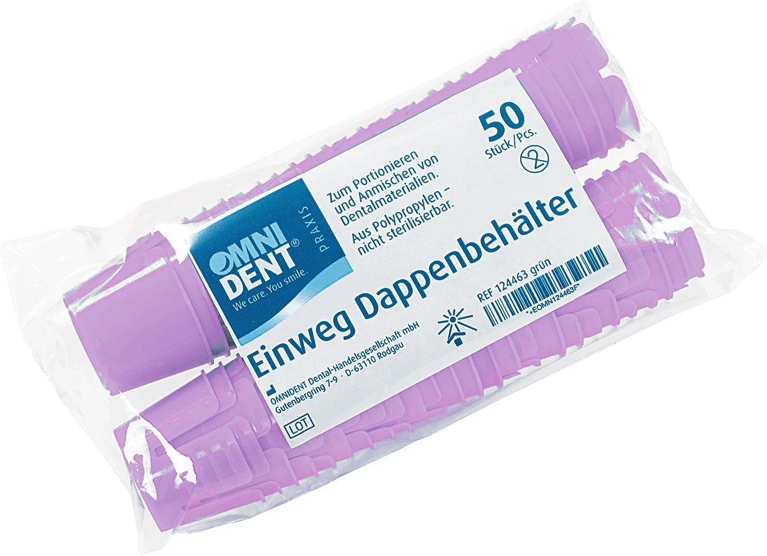 Praktisch, sauber und zeitsparend: Die Omni Einmaldappenbehälter ermöglichen das hygienische Portionieren und Anmischen von Dentalmaterialien – ideal für den Einmalgebrauch im Praxisalltag.