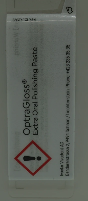 - Polishing Paste für OptraGloss Extra Oral. Somit fügt sich OptraGloss Extra Oral perfekt in den CAD/CAM Chairside Workflow ein.