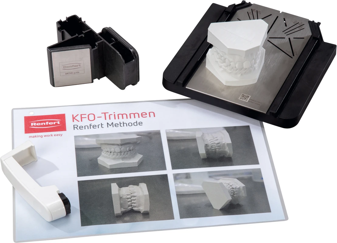 - Schnelles und präzises bissorientiertes Trimmen von Modellen der Kieferorthopädie durch intuitive Schablone und speziellen Trimmertisch