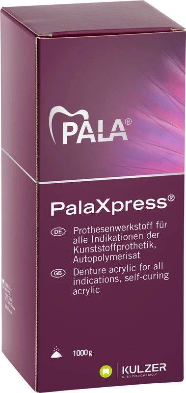 PalaXpress® Der Marktführer* - passgenauer Universal-Prothesenkunsstoff PalaXpress® ist für verschiedene Indikationen geeignet. Es kann sowohl gegossen als auch mit Palajet injiziert werden. Mit dem abgestimmten System PalaXpress® und Palajet lassen sich passgenaue Totalprothesen im Injektionsverfahren herstellen. Durch die einzigartige Rezeptur bietet Ihnen PalaXpress sowohl bei der Gießtechnik als auch bei der Injektion eine ungewöhnlich große Verarbeitungsbreite. *laut GfK-Studie MAT 12/2018 - Kaltpolymerisate Deutschland. VORTEILE